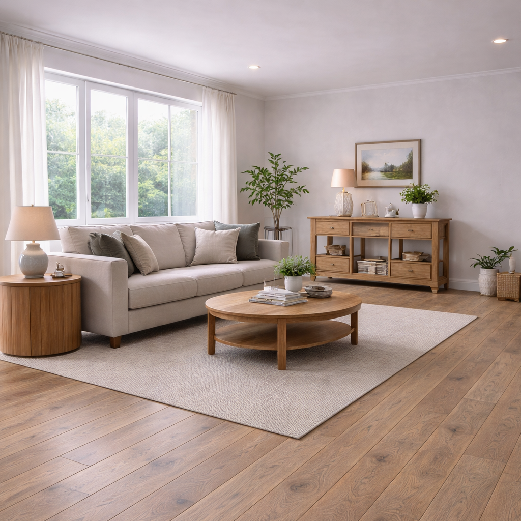 Diese Landhausdiele aus Eiche in Natur Sortierung verleiht Räumen einen natürlichen, charakterstarken Ausdruck mit Wärme und Authentizität.