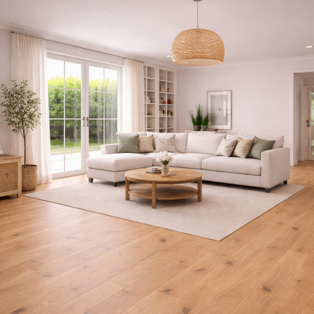 Diese Landhausdiele aus Eiche in Rustikal-Sortierung vereint eine ruhige, ausgewogene Optik mit der natürlichen Ausstrahlung von echtem Holz. Die dezente Maserung, feine Farbnuancen und vereinzelte, zurückhaltende Äste sorgen für ein harmonisches und zeitloses Erscheinungsbild.