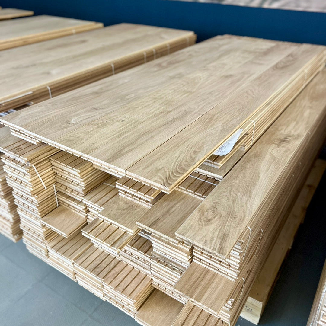 Diese Landhausdiele aus Eiche in Natural-Sortierung vereint eine ruhige, ausgewogene Optik mit der natürlichen Ausstrahlung von echtem Holz. Die dezente Maserung, feine Farbnuancen und vereinzelte, zurückhaltende Äste sorgen für ein harmonisches und zeitloses Erscheinungsbild.