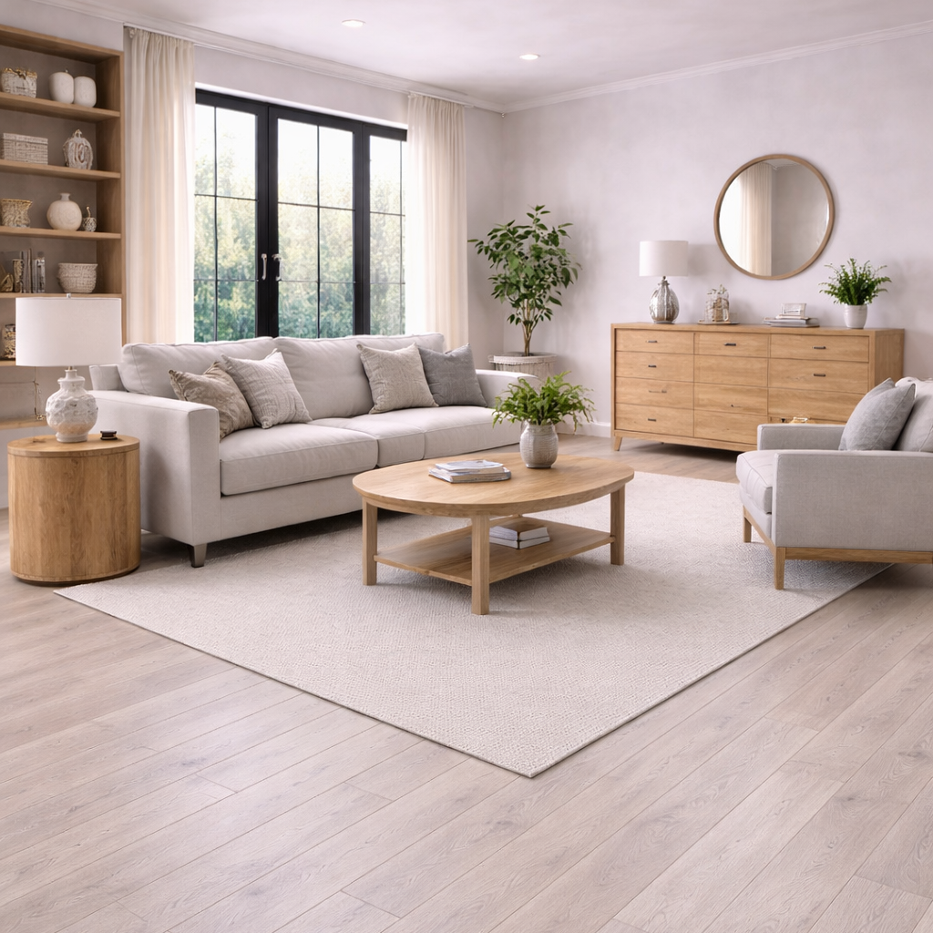 Die antik geölte Oberfläche verleiht der Eiche eine helle, zeitlose Farbwirkung mit sanften, leicht gekalkten Nuancen. Die natürliche Maserung bleibt klar sichtbar und wird durch das Öl dezent betont, ohne dem Holz seine Ursprünglichkeit zu nehmen. Das Ergebnis ist eine ruhige, elegante Optik mit natürlicher Tiefe, die Räume offen, freundlich und hochwertig wirken lässt. Gleichzeitig fühlt sich die Oberfläche angenehm authentisch an und unterstützt ein harmonisches, modernes Wohnambiente.