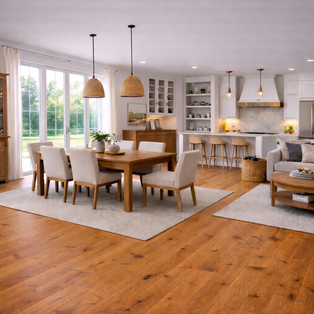 Diese Landhausdiele aus Eiche in Rustikaler Sortierung verleiht Räumen einen natürlichen, charakterstarken Ausdruck mit Wärme und Authentizität. Die ausgeprägte Maserung, Äste und natürlichen Farbvariationen unterstreichen den ursprünglichen Holzcharakter.