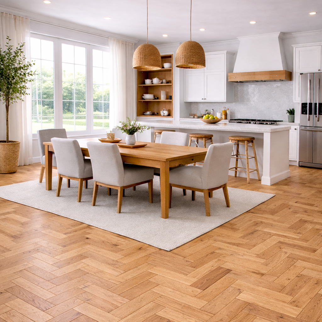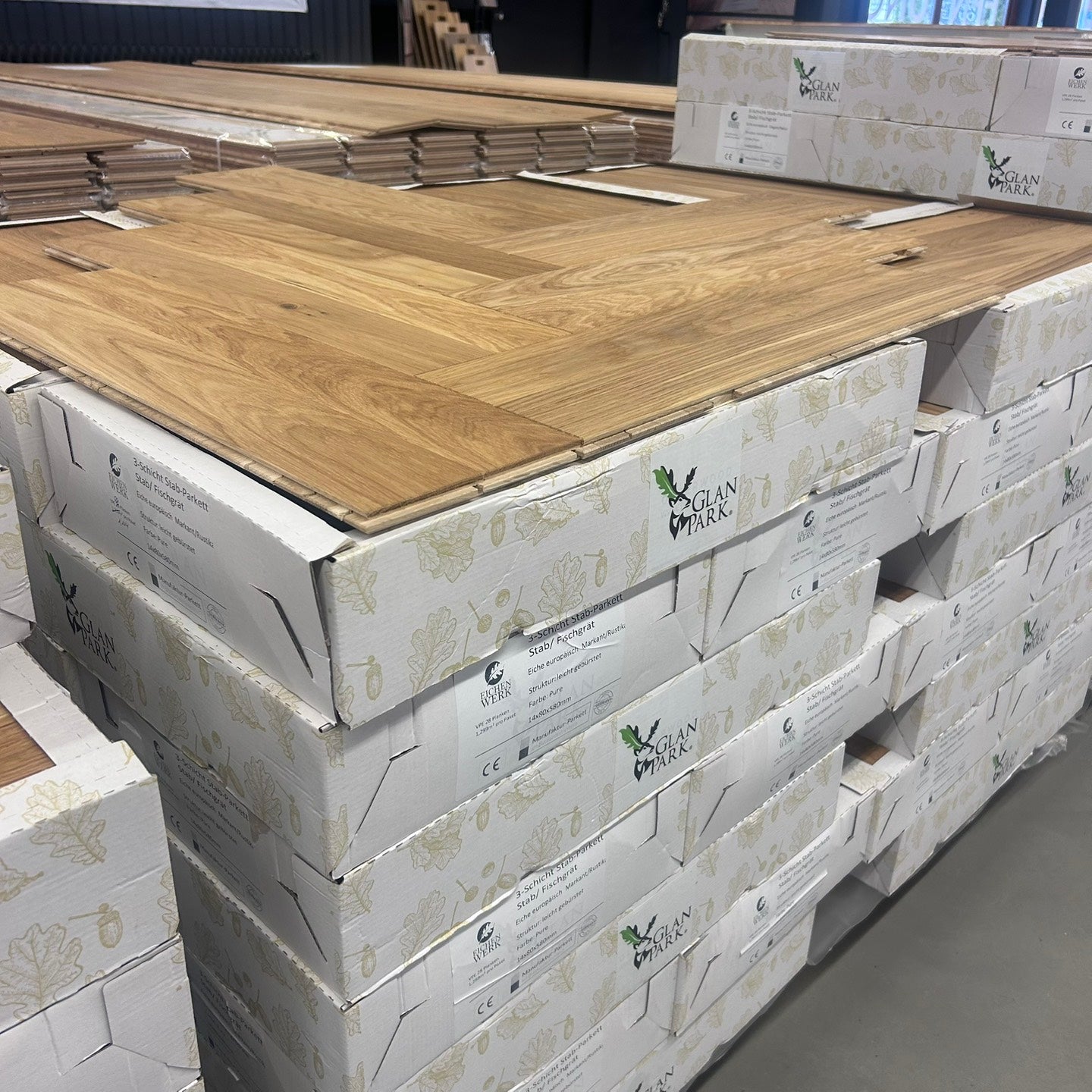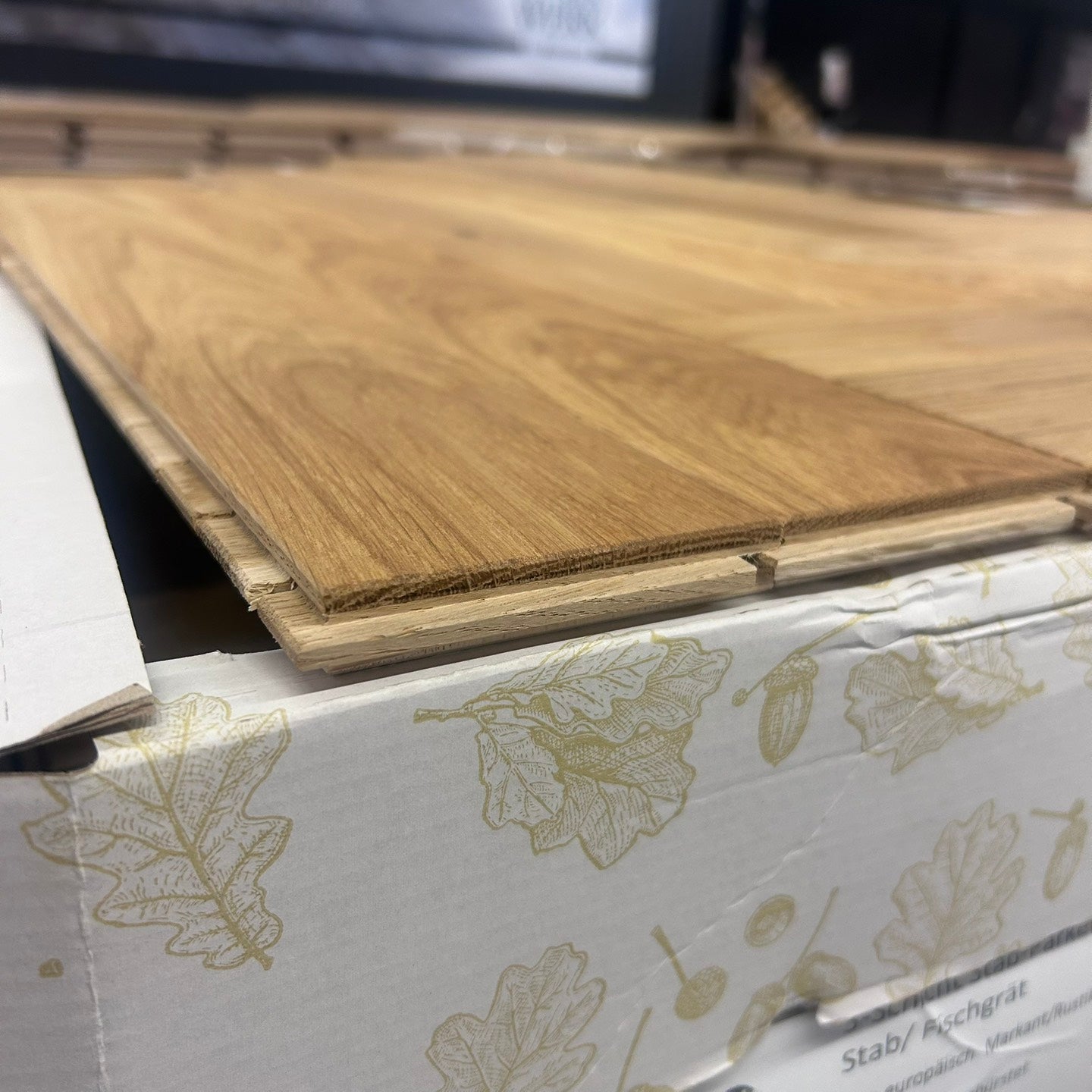 Dieses Stabparkett aus Eiche in markant/rustikaler Sortierung verleiht Deinen Räumen Charakter, Wärme und eine natürliche Ausstrahlung.